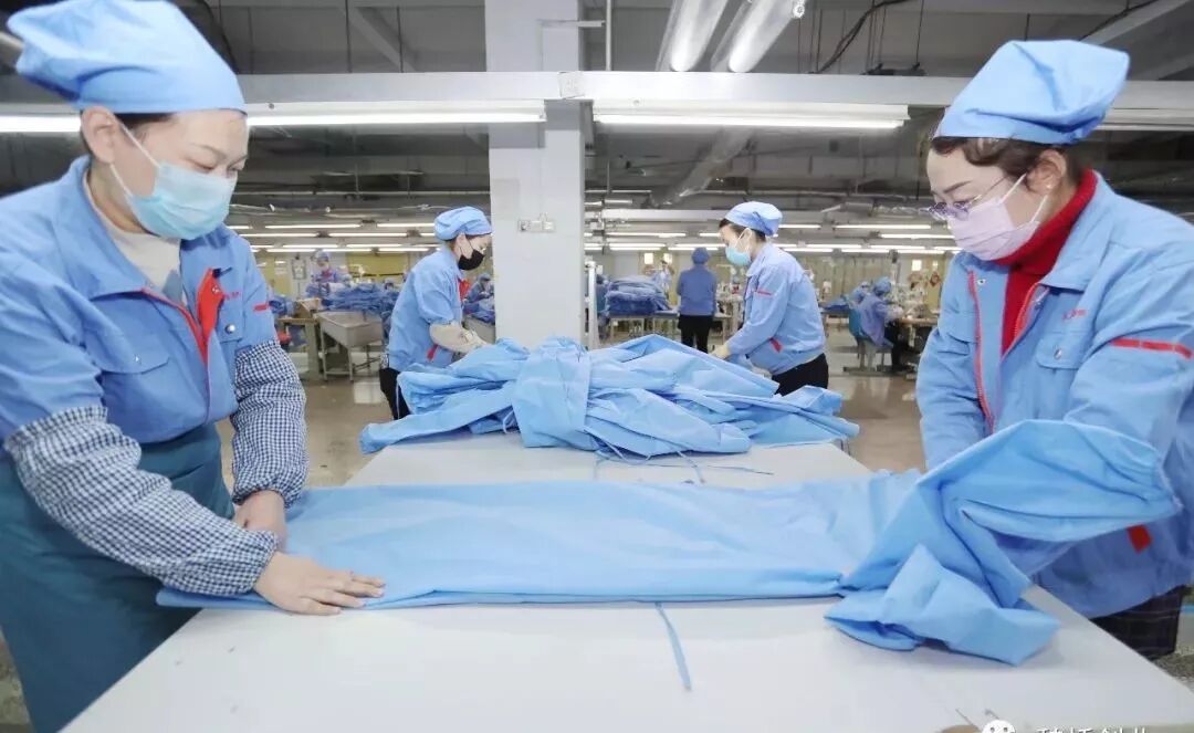 针对当前抗疫一线防护服、隔离衣短缺现状,向尚服饰立即行动,不计损失,推迟各种订单紧急转产。他们发挥集团产业优势,弘扬工匠精神,努力克服各种难题,紧急展开面料及熔喷布采购、生产线改造、设计研发、生产组织等工作,仅几天时间就将服装生产线改造为防疫需要的隔离衣、防护服生产线,并组织员工开足马力生产,目前已实现日产1000多套件。